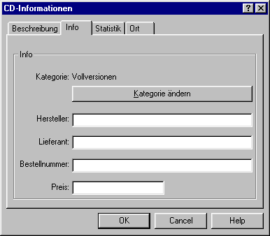 In diesem Dialog kann man weitere Information zur gerade geladenen CD eingeben bzw. nachsehen.
