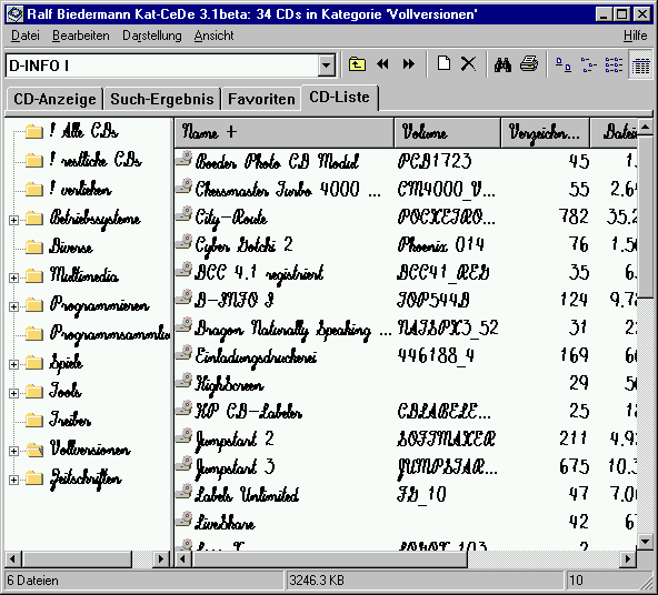 2. Man möchte unterschiedliche Kataloge, z. B. von Freunden oder Bekannten, verwalten. Unter den Einstellungen, die man so wählen kann, ist auch der Pfad auf die CD-Datenbank. Man ändert also einfach den Pfad der Datenbank auf ein neues Verzeichnis, in dem die Daten des Bekannten stehen, und speichert die Konfiguration unter dem Namen des Bekannten ab und schon kann man mehrere getrennte Datenbanken verwalten und auswählen.